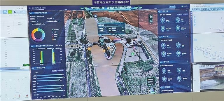 在河套灌區(qū)水量信息化監(jiān)測中心50米長的數(shù)字屏幕上,“數(shù)字總干渠”灌溉運(yùn)行決策支持系統(tǒng)只是其中一項(xiàng)內(nèi)容,在這個(gè)數(shù)字屏幕上,還能看到黃河三盛公水利樞紐工程的實(shí)時(shí)畫面、河套灌區(qū)渠溝道樞紐工程實(shí)時(shí)運(yùn)行現(xiàn)狀、總干渠5座樞紐工程運(yùn)行情況視頻、河套灌區(qū)水量調(diào)度系統(tǒng)、內(nèi)蒙古黃河實(shí)時(shí)視頻監(jiān)控等各種實(shí)時(shí)監(jiān)控畫面和實(shí)時(shí)數(shù)據(jù),先進(jìn)的科技讓人震撼。