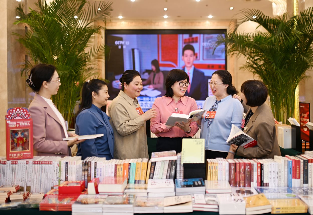 3月7日,參加十四屆全國人大二次會議的內蒙古代表團的女代表們在會議間隙來到駐地書吧,選購自己喜歡的書籍。大會開幕以來,她們圍繞我區(qū)經濟建設、科技創(chuàng)新、鄉(xiāng)村振興等方面提建議、談感受,積極建言獻策,為奮力書寫中國式現(xiàn)代化內蒙古新篇章貢獻力量。草原全媒記者馬建荃孟和朝魯攝