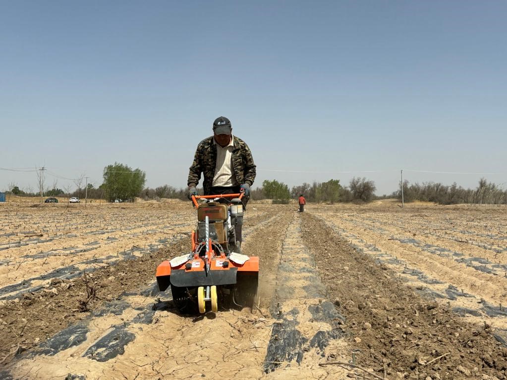 連日來,在新華林場育苗基地里,工人們正在用手扶式旋耕機進行旋地作業(yè),將樹苗間一塊塊板結(jié)的土壤打散?!靶乜梢苑乐雇恋匕褰Y(jié)龜裂導致的水分流失,提高樹苗成活率,為提高育苗造林質(zhì)量打好基礎?!毙氯A林場職工呂林澤介紹說,4月以來,林場采用扦插育苗的方式培育330畝楊樹、柳樹等喬木,采用播種育苗的方式培育170畝楊柴、紫穗槐等灌木,育苗工作進展順利。