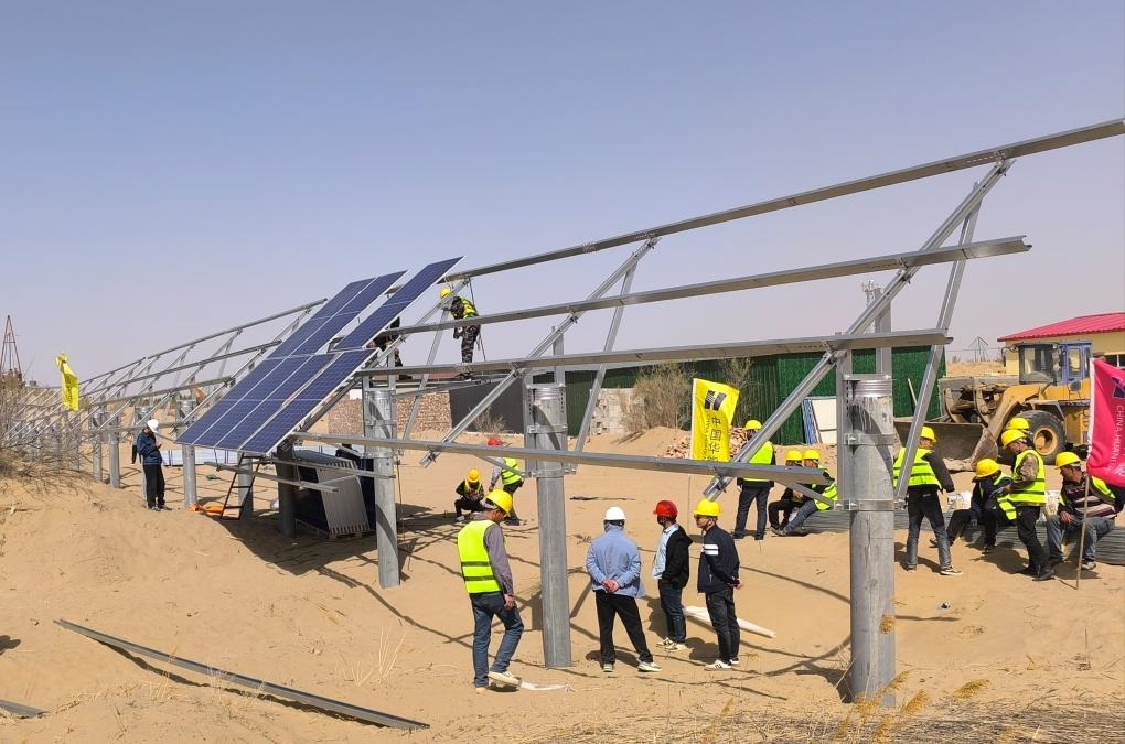 記者在新華林場民樂作業(yè)區(qū)看到,與其他作業(yè)區(qū)的造林治沙方式相比,這里既沒有栽樹,也沒有種草,而是在沙地里“栽”下了一個個水泥樁。葛文斌告訴記者:“這里是防沙治沙和風電光伏一體化工程項目區(qū)。‘栽’水泥樁就是為后期安裝光伏板、建設光伏電站做準備。在光伏板上發(fā)電的同時,我們還可以在光伏板下種植固沙植物,幫助地表植被恢復,達到既能發(fā)電‘生金’又能實現(xiàn)沙化土地縮減的雙重功效。”(記者李云平、侯維軼)
