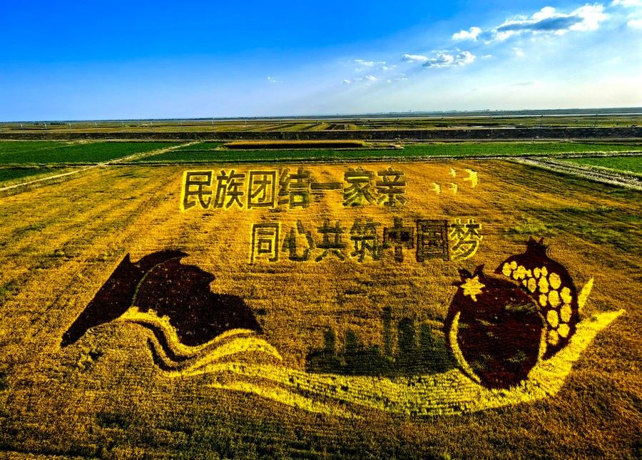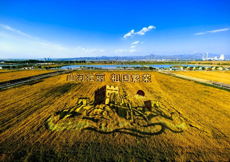 不一樣的內(nèi)蒙古 | 內(nèi)蒙古包頭巨幅稻田畫祝福祖國(guó)繁榮昌盛
