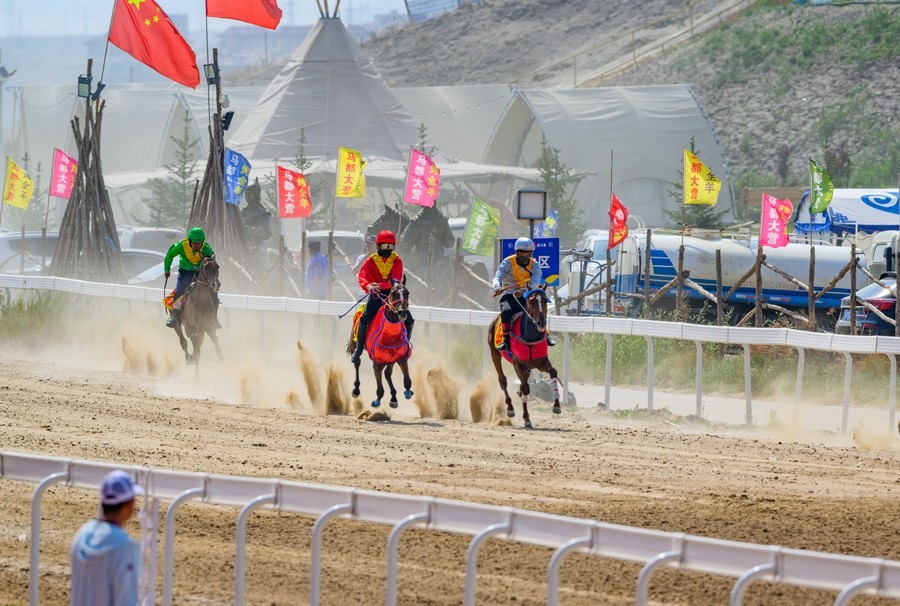 7月13日下午,內(nèi)蒙古錫林浩特馬都核心區(qū)賽馬場,錫林浩特蒙古馬積分賽1000米速度賽和15公里接力賽正在這里輪番進行,比賽現(xiàn)場,選手們策馬奔騰,激戰(zhàn)正酣。