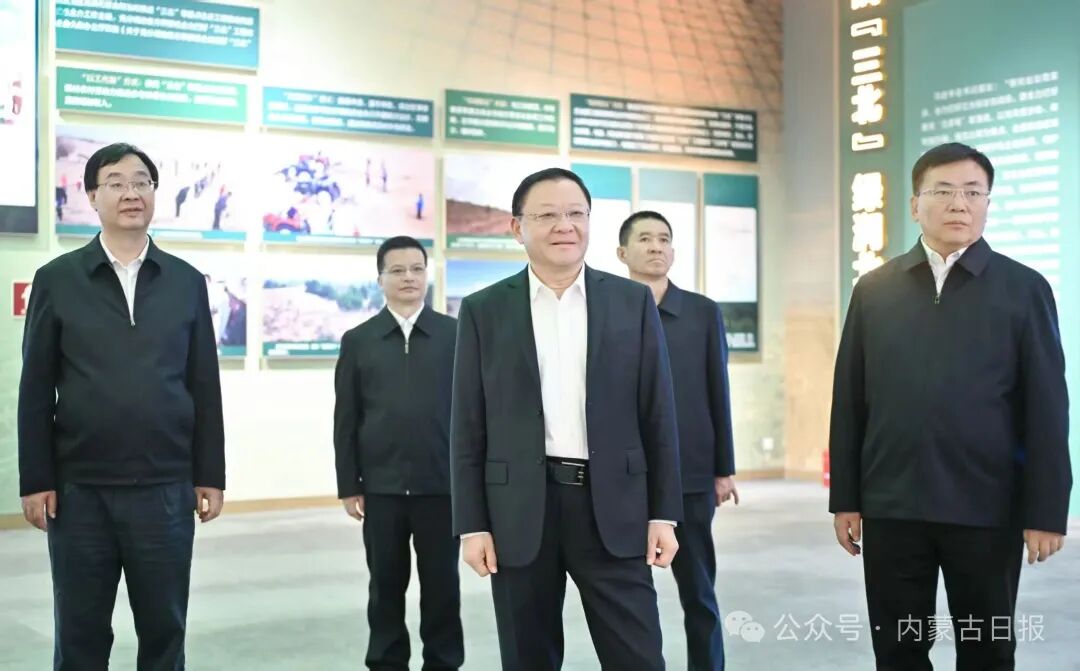 10月7日,自治區(qū)黨委書(shū)記、人大常委會(huì)黨組書(shū)記王偉中來(lái)到內(nèi)蒙古展覽館,分別參觀“牢記囑托 感恩奮進(jìn)——辦好兩件大事 奮力書(shū)寫(xiě)中國(guó)式現(xiàn)代化內(nèi)蒙古新篇章”、“綠色長(zhǎng)城 生態(tài)奇跡——內(nèi)蒙古防沙治沙和‘三北’工程攻堅(jiān)戰(zhàn)”主題展。自治區(qū)黨委副書(shū)記、自治區(qū)人民政府黨組書(shū)記、呼和浩特市委書(shū)記包鋼參加。