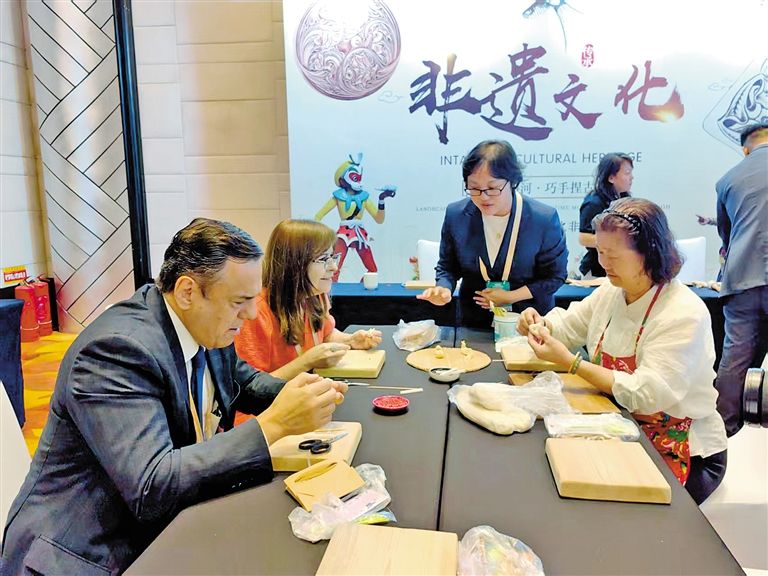外賓在第五屆中蒙博覽會2025年國家向北開放重要橋頭堡智庫論壇非遺文化展區(qū)體驗(yàn)。 草原云·內(nèi)蒙古新聞網(wǎng)記者 李永桃 攝