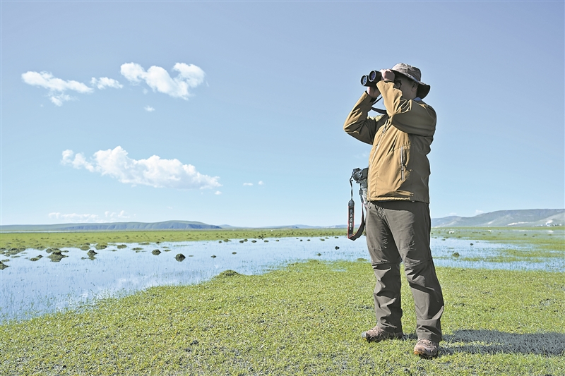 清晨,內(nèi)蒙古呼倫貝爾市額爾古納濕地涼意襲人。寶金財背著長焦鏡頭、胸前掛著高倍望遠(yuǎn)鏡開始了他一周兩次的樣線調(diào)查之旅。27歲的寶金財是額爾古納濕地自然保護(hù)區(qū)管理局的一名鳥類保護(hù)工作人員。