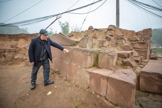 2月9日,在重慶合川釣魚城遺址,重慶市文物考古研究院副院長袁東山在介紹新發(fā)掘出的位于類似闕臺(tái)建筑基址上的宋井。新華社記者 黃偉 攝