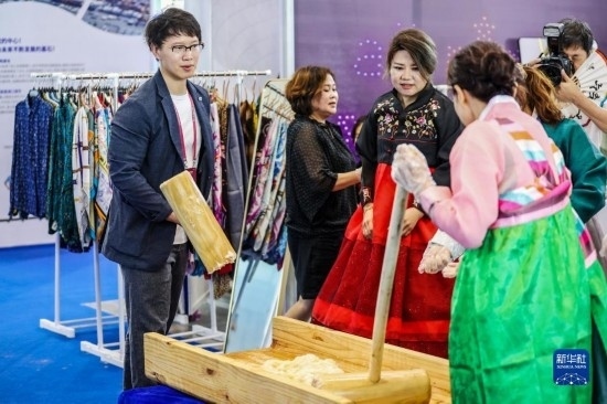 當(dāng)日,第三屆韓國(山東)進(jìn)口商品博覽會在山東威海國際經(jīng)貿(mào)交流中心開幕。本屆韓博會展出面積4.5萬平方米,設(shè)置國際標(biāo)準(zhǔn)展位1690個,設(shè)有“中韓成果館”“跨境主題館”“國際交流館”“地方品牌館”。