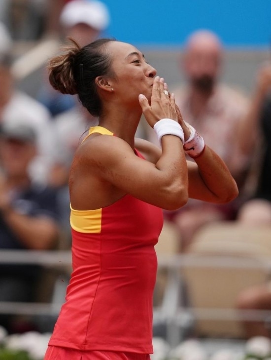 8月1日,張之臻在比賽中。 當(dāng)日,在巴黎奧運會網(wǎng)球混合雙打半決賽中,中國組合王欣瑜/張之臻戰(zhàn)勝荷蘭組合舒爾斯/庫爾霍夫,晉級決賽。 新華社記者 萬象 攝