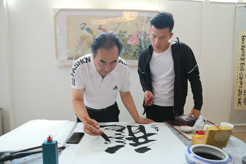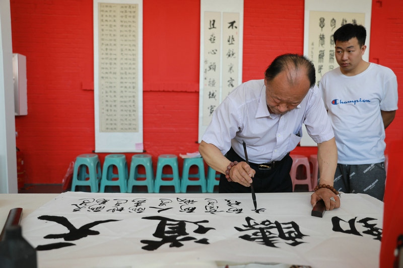 活動現(xiàn)場,書畫家們鋪開宣紙,揮灑愛心情懷。30余名書畫家和愛心人士在活動現(xiàn)場揮毫潑墨、內(nèi)蘊文質(zhì)精華,外彰形制逸美,以古典文詞展示"尚善"情操和"望賢"之心。"止于至善"、"家和業(yè)興,寧靜致遠"、"構建和諧社會 倡導助殘風尚"……一幅幅充滿著關愛和正能量的藝術作品陸續(xù)被創(chuàng)作完成。