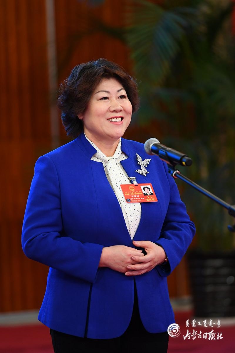人大代表云霖瓊答記者問(wèn)。內(nèi)蒙古日?qǐng)?bào)記者 金泉 攝