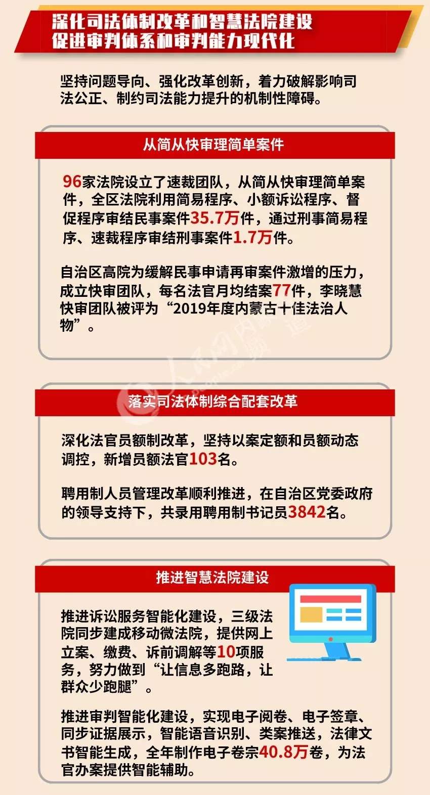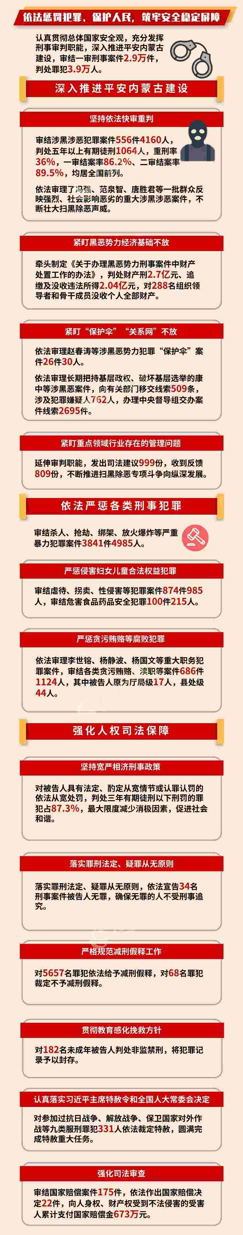 會上,內(nèi)蒙古自治區(qū)高級人民法院院長楊宗仁作《內(nèi)蒙古自治區(qū)高級人民法院工作報告》,內(nèi)蒙古自治區(qū)人民檢察院檢察長李琪林作《內(nèi)蒙古自治區(qū)人民檢察院工作報告》。“兩院”工作報告都有哪些看點?今年兩會,小編繼續(xù)帶您看圖說兩會。