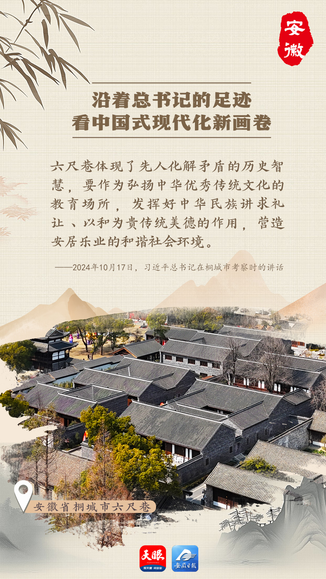 在桐城市六尺巷景區(qū),歷史與現(xiàn)代交織成一幅獨(dú)特畫卷。這里傳承三百多年的“禮讓文化”生生不息,文物在數(shù)字技術(shù)助力下“鮮活”起來。2024年10月17日,習(xí)近平總書記親臨桐城市考察并作出重要講話,為當(dāng)?shù)匕l(fā)展注入強(qiáng)大動(dòng)力。
