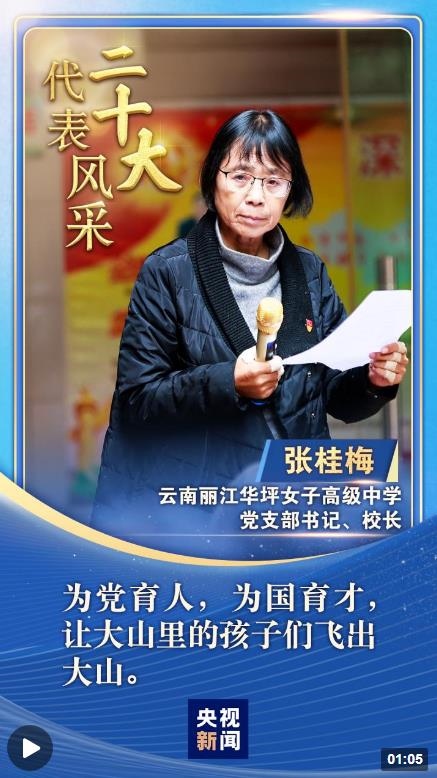“二十大代表風(fēng)采”一起來認(rèn)識“七一勛章”獲得者,云南麗江華坪女子高級中學(xué)創(chuàng)辦人張桂梅。