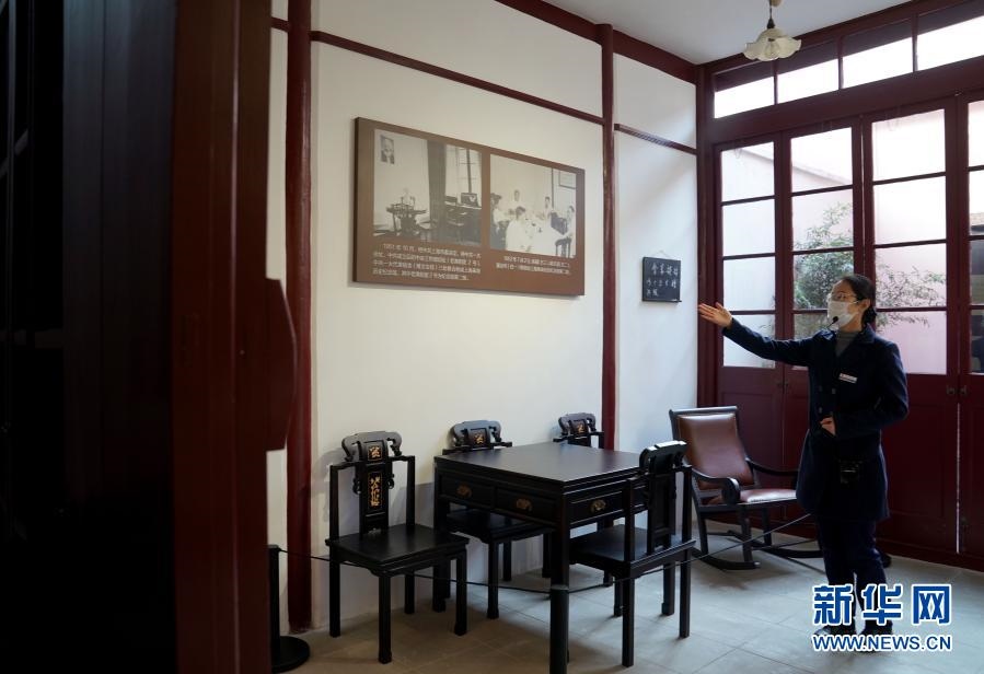 1月18日,在“中國(guó)共產(chǎn)黨發(fā)起組成立地”和“《新青年》編輯部舊址”內(nèi),講解員在講解。新華社記者 劉穎 攝