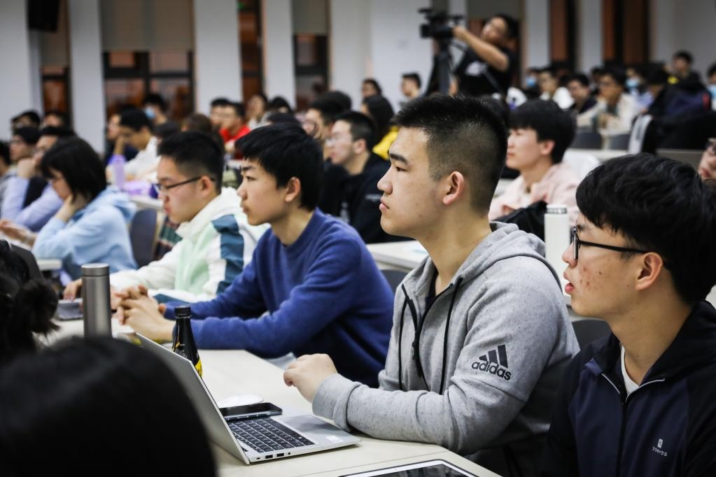 中國科學(xué)院院士張平文為南開學(xué)子講授“名師引領(lǐng)”通識課之“走進(jìn)人工智能與數(shù)據(jù)科學(xué)”。(南開大學(xué)供圖)